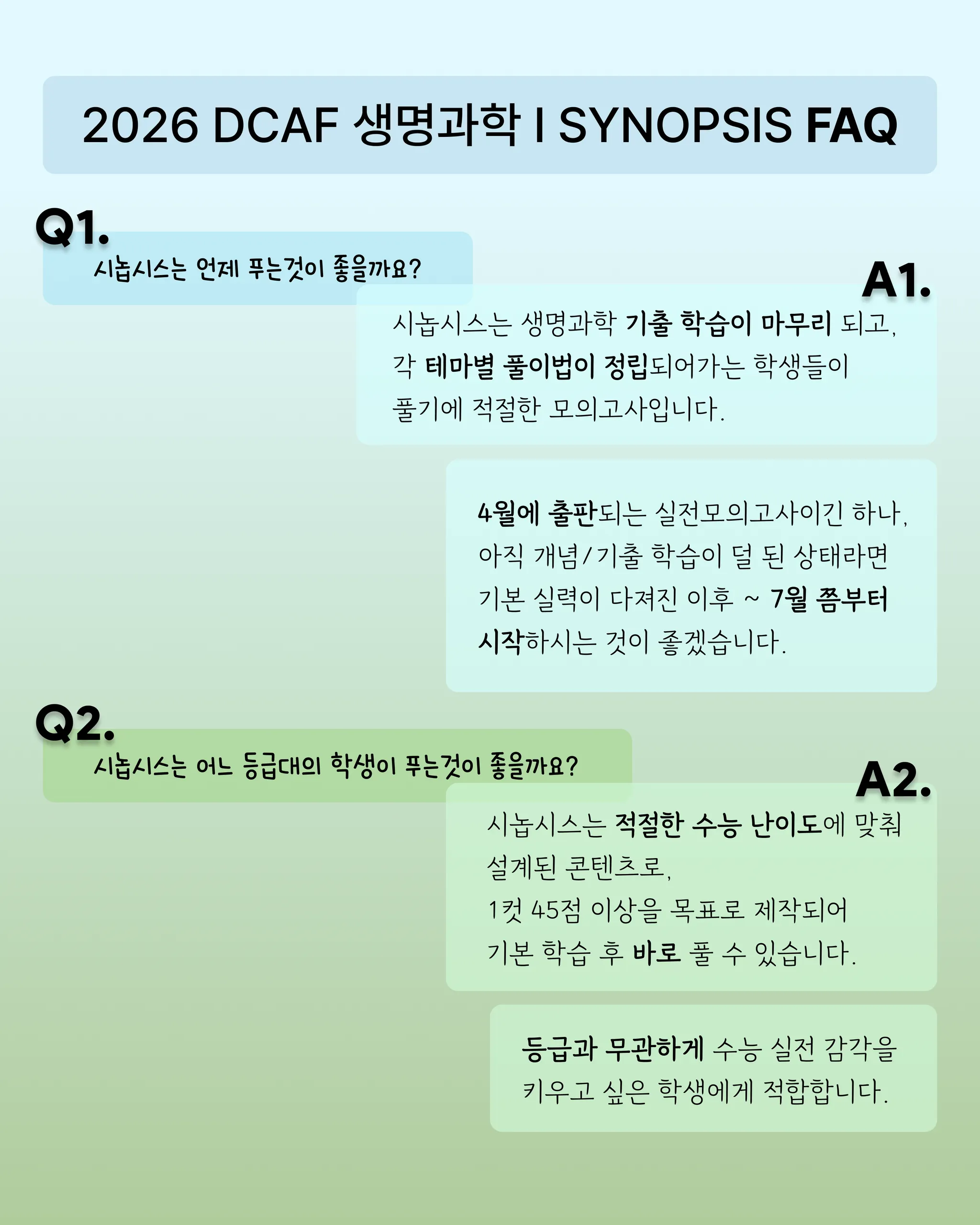 2026 DCAF 생1 모의고사 8종 상세 설명